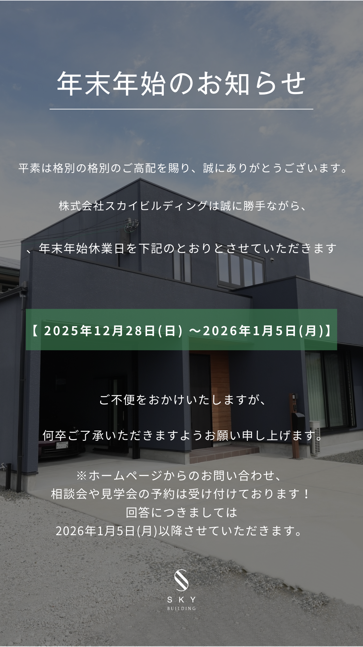 休業期間 2025年12月28日(日) 〜2026年1月5日(月)