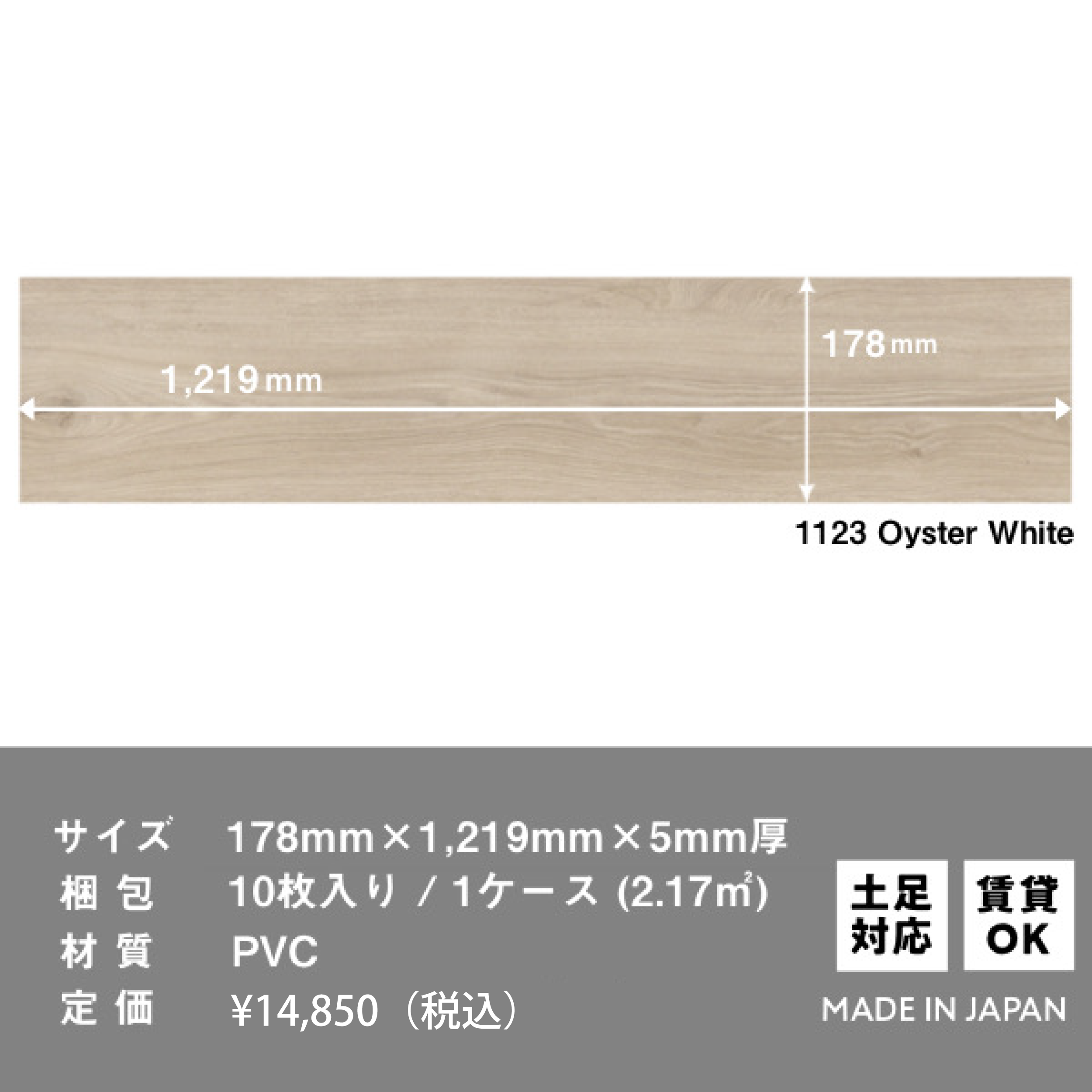 1枚あたり 178mm × 1,219mm ×5mm厚