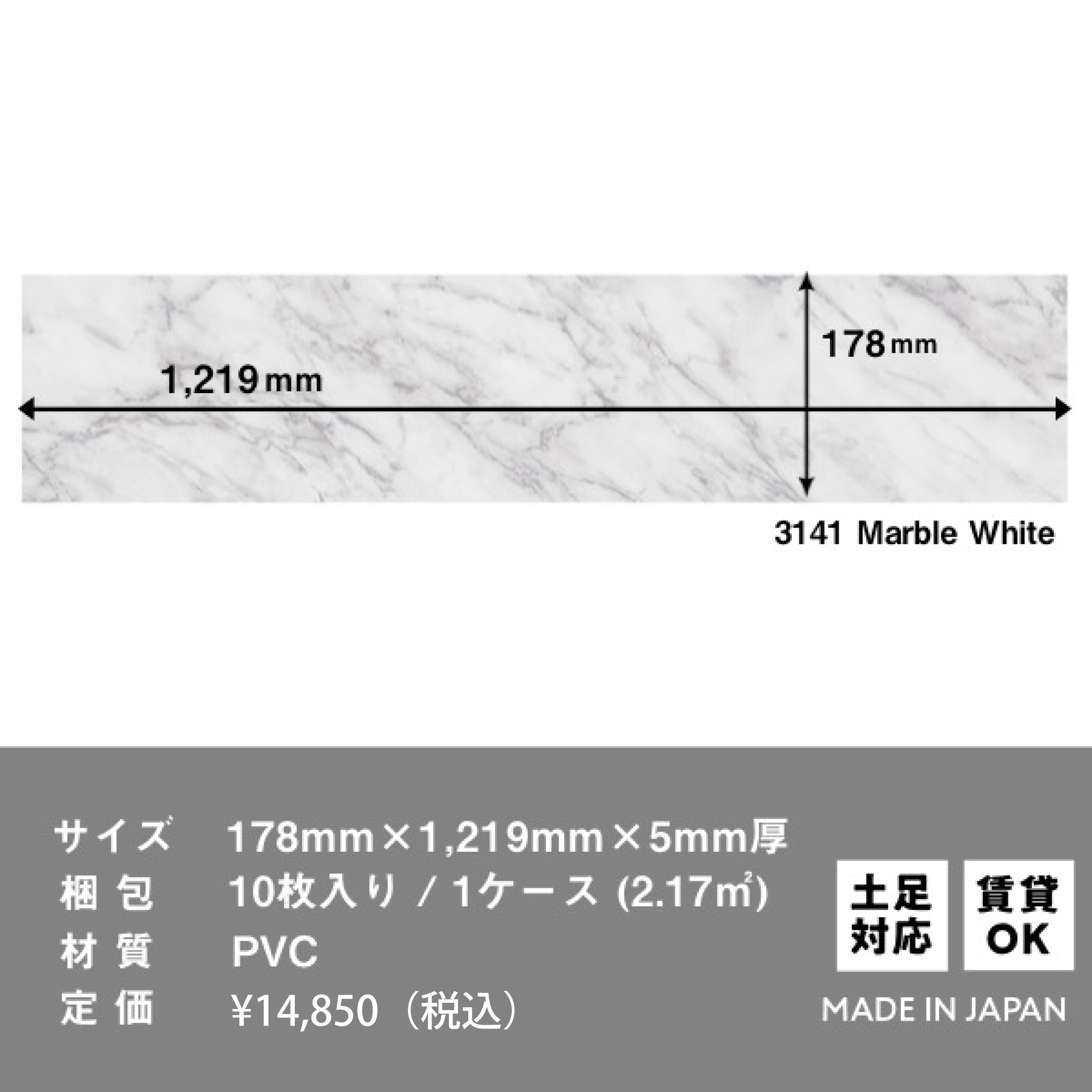 1枚あたり 178mm × 1,219mm ×5mm厚