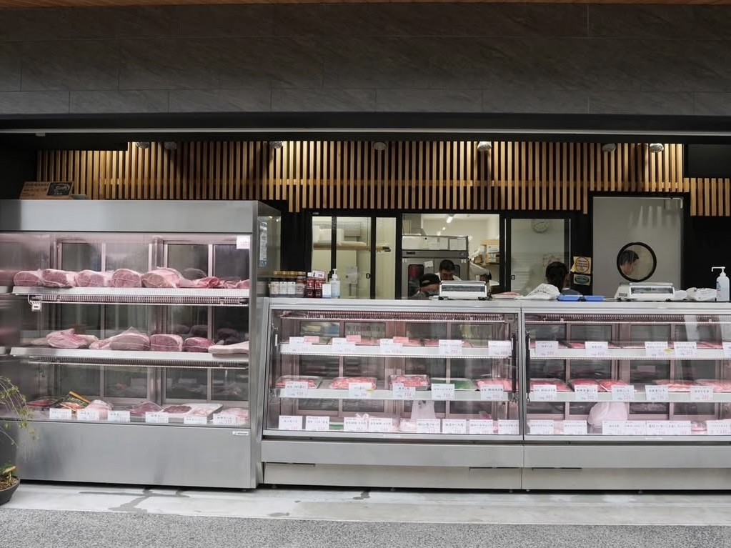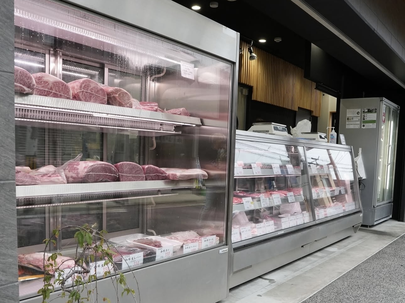 一階は、肉本来の魅力が際立つ売り場構成と照明計画により、鮮度と品質が自然と伝わる設計に